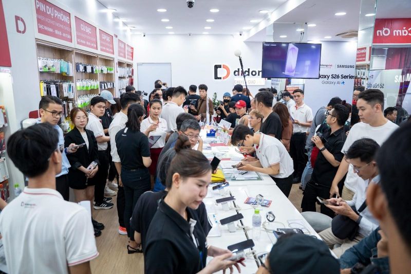Không khí mua sắm tại sự kiện trả hàng và mở bán sớm Samsung Galaxy S26 của Di Động Việt.