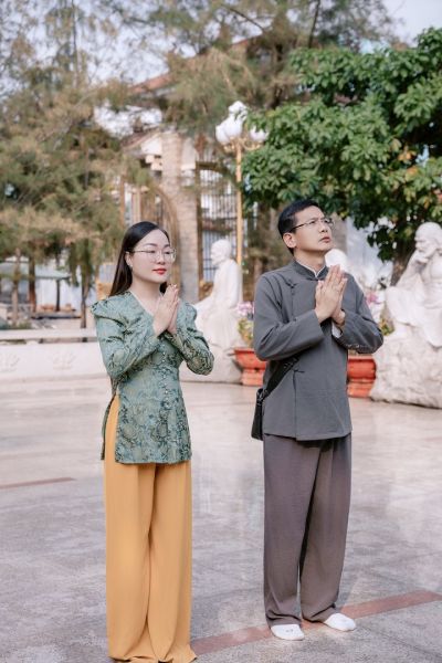 Không phô trương, không cầu kỳ, từng khoảnh khắc lễ Phật của Hoa hậu Hoàng Thanh Nga ghi dấu bằng sự thành tâm, an nhiên và tĩnh tại. Giữa không gian trầm mặc của chốn thiền môn, hình ảnh cô khép tay cầu nguyện bên ông xã doanh nhân mang đến cảm giác bình yên, ấm áp – một biểu tượng đẹp của sự đồng hành, gắn kết và sẻ chia trong cả đời sống tinh thần lẫn hành trình hôn nhân.