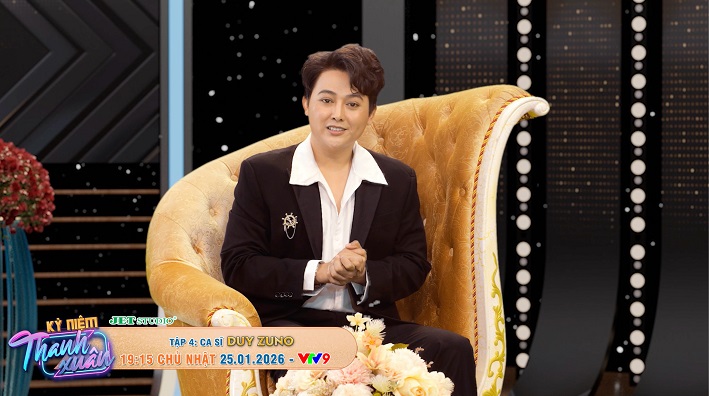 Tập 4 Kỷ Niệm Thanh Xuân với ca sĩ Duy Zuno sẽ được phát sóng lúc 19:15, Chủ Nhật ngày 25/01/2026 trên kênh VTV9. Chương trình do VTV9 phối hợp cùng Jet Studio thực hiện.