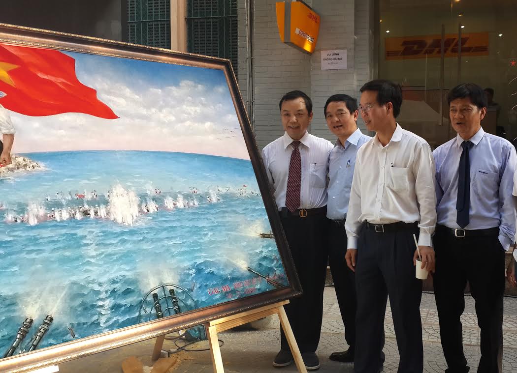 Các ban ngành lãnh đạo đến chúc mừng Ngôi nhà Hạt giống Tâm Hồn của First News. Từ trái qua: Ông Nguyễn Văn Phước - Giám đốc Công Ty First News, Ông Lê Viết Hải - chủ tịch tập đoàn xây dưng Hòa Bình, người đã đấu giá thành công bức tranh Gạc Ma vòng tròn bất tử với mức giả 1 tỷ 280 triệu., Ông Võ Văn Thưởng - Phó Bí thư thường trực thành ủy TP. HCM. Ông Lê Thái Hỷ - Giám đốc sở Thông tin và Truyền Thông.
