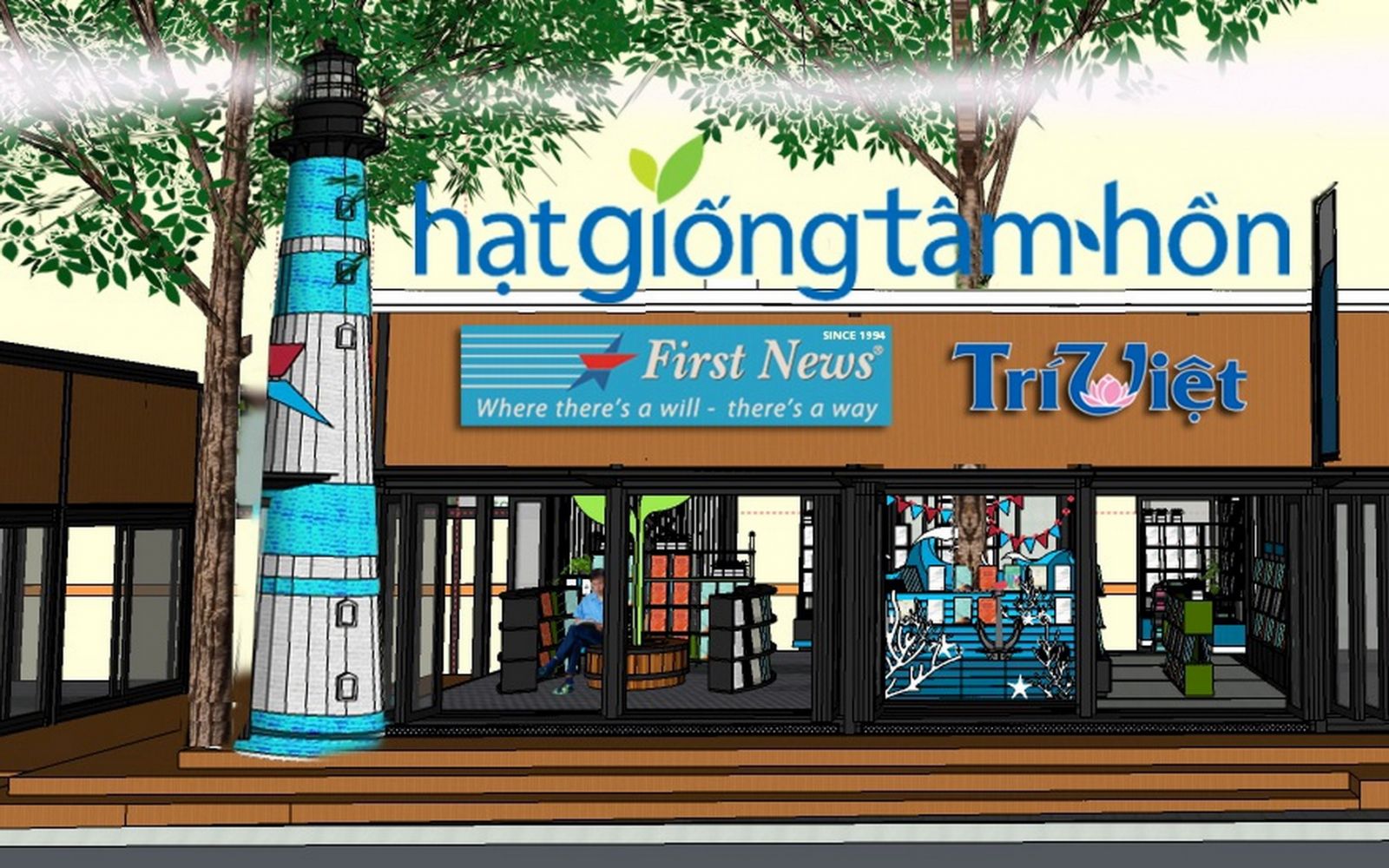 “Kệ sách Hạt Giống Tâm Hồn”được thiết kế độc đáovới chỗ ngồi đọc sách thoải mái ngay bên trong kệ sách. Đây là nơi được bạn trẻ ưa thích và chụp hình nhiềutrong gian hàng.Ý tưởng này dựa trên một thiết kế đoạt giải trong cuộc thi thiết kế kệ sáchsáng tạo ở Nhật Bản.