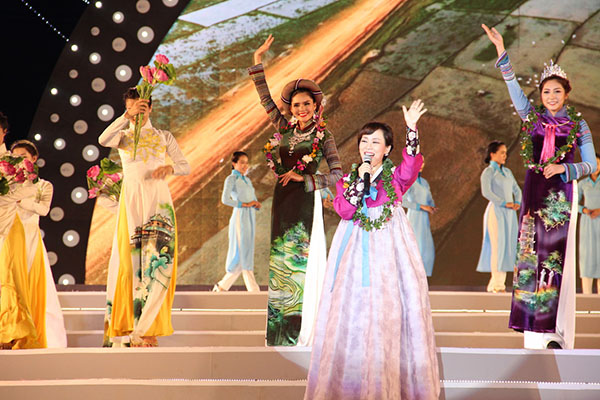 Á hậu Kim Nguyên và Hoa hậu Đặng Thu Thảo trình diễn áo dài bắc trung nam