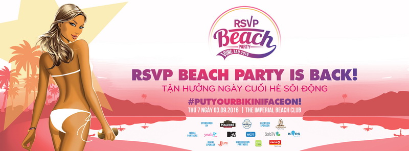 RSVP Beach Party 2016 sẽ chính thức diễn ra vào ngày 3/9/2016 từ 18h đến 23h59 tại The Imperial Beach Club, Khách sạn 5 sao Imperial, số 8 Thùy Vân, thành phố biển Vũng Tàu. Hãy nhanh tay đặt vé để tận hưởng những ngày cuối hè thật “chất ngất” nhé! Let’s “Put your bikini face on”! Vé hiện đang được bán tại đây. Hotline: 0908 303 418. (https://ticketbox.vn/event/rsvp-beach-party-2016-62160/36634#)