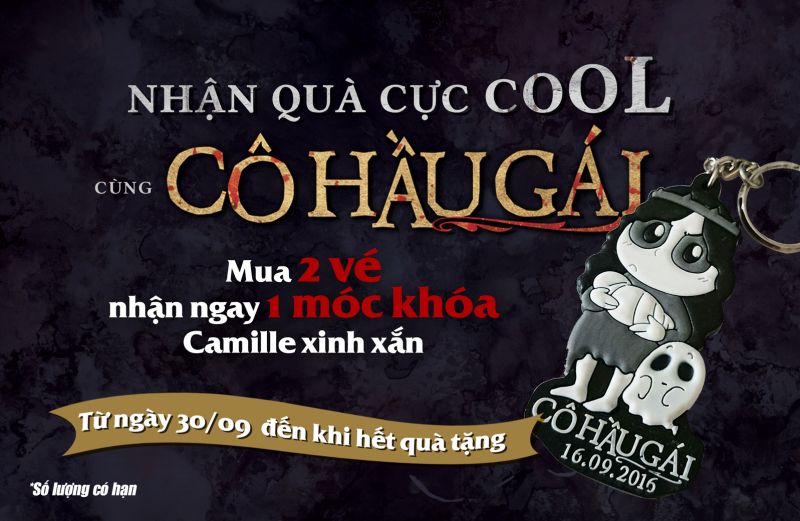 Thông tin cực “hot” cho khán giả xem phim Cô Hầu Gái là từ ngày 30/9/2016 khi mua hai vé xem phim tại bất kỳ hệ thống rạp chiếu phim trên toàn quốc, khán giả sẽ được tặng 1 móc khóa chibi hình Camille cực dễ thương với số lượng có hạn. Món quà như lời tri ân của ekip sản xuất và các diễn viên trong đoàn phim dành cho khán giả hâm mộ bộ phim trong thời gian qua.