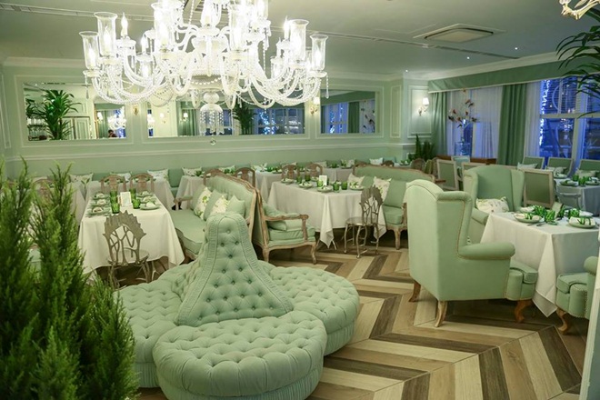 Nhà hàng chay không những thanh tịnh, ấm cúng mà còn phải toát lên vẻ tinh tế, thoáng đãng. Chọn phong cách Mixed match với chủ đích lấy thiên nhiên làm điểm nhấn trên nền đồ nội thất mang hơi hướm Tân Cổ Điển, Khanhcasa Vegetarian & Tea Garden mong muốn đem đến cho thực khách trải nghiệm món chay trong không gian tông xanh bạc hà tao nhã, mát dịu. Mặc dù có sức chứa hơn 150 chỗ ngồi, lại nằm trong khuôn viên một tòa nhà văn phòng nhưng Khanhcasa Vegetarian & Tea Garden vẫn tạo cảm giác thư giãn như đang ở giữa khu vườn xanh mát. Về đêm, thực khách sẽ được chiêm ngưỡng một cảnh đêm kỳ vĩ từ chỗ ngồi bên trong tòa nhà: 400 ngàn hạt pha lê cẩn trần tạo cảnh tượng như đang đối ẩm dưới bầu trời đầy sao rực rỡ.