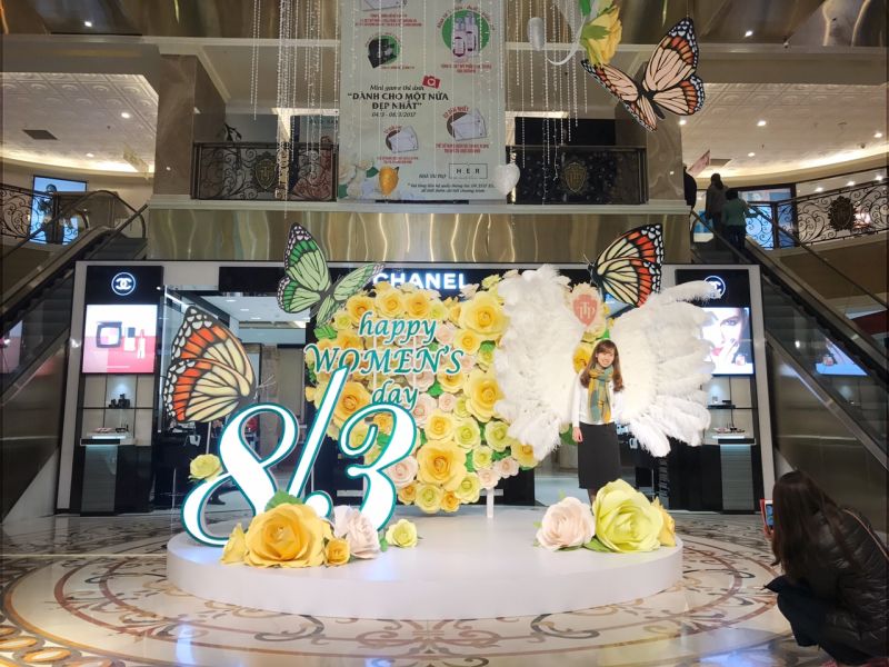 Một trong những địa điểm thu hút phái nữ là Tràng Tiền Plaza. Từ 4-8/3, tại đây sẽ có chương trình giảm giá từ 20% đến 50%. Đặc biệt, với hóa đơn từ 2 đến 3 triệu đồng, khách hàng được nhận một đồng hồ để bàn sang trọng. Với hóa đơn từ 3 đến dưới 5 triệu đồng sẽ nhận được một set sản phẩm từ L’Occitance. Với hóa đơn từ 5 triệu đồng trở lên, khách hàng được nhận một đồng hồ để bàn Tràng Tiền Plaza, một set quà tặng L’Occitance và một phiếu quà tặng của H.E.R Spa trị giá 5 triệu đồng.