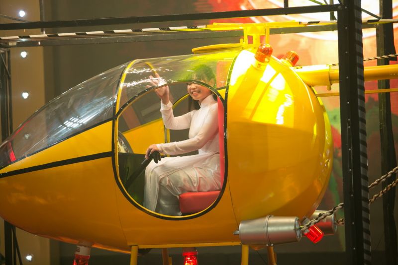 Chưa dừng lại, anh còn mời trợ diễn đứng trên tấm bia xoay liên tục 360 độ để anh biểu diễn phóng dao khiến khán giả thót tim. Đây cũng là màn biểu diễn mà anh vừa xác lập Kỷ lục Việt Nam vào tháng 6/2017. Sau món quà tặng vợ, ảo thuật gia Hoàng Khang đã biến ra cả 1 chiếc máy bay có kích thước bằng chiếc trực thăng thật trên sân khấu chỉ bằng những động tác nhanh gọn và vi diệu. Người ngồi trên chiếc may bay đó chính là Đặng Thị Thanh Tuyền cô con gái xinh đẹp 17 tuổi đã đồng hành cùng anh trong chương trình Kỳ Tài Lộ Diện.