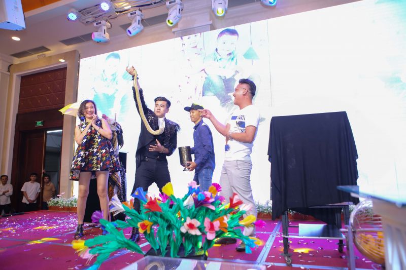 Ảo Thuật gia Tuấn Minh và màn biểu diễn rắn xuất hiện quấn lấy 2 vị khách