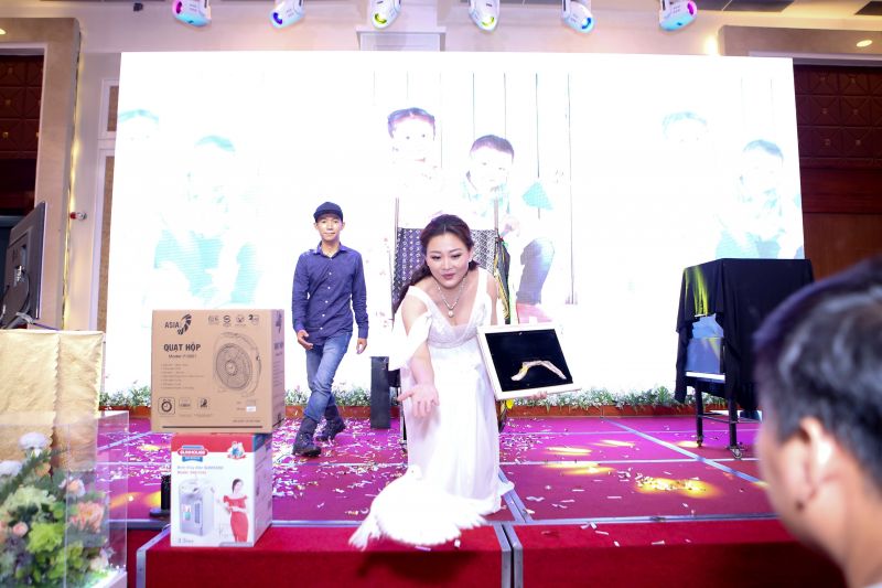 Khi chiếc hộp được tách làm 3 khúc, thì những tràng pháo tay vang lên và nhiều người thắc mắc không biết nàng hoa hậu đã “ biến mất” tận nơi nào! Thêm 1 phút nữa, chàng ảo thuật gia trổ tài ráp lại chiếc hộp và mở ra đưa nàng Hoa hậu Nguyễn Kim Nhung vẹn nguyên tươi tắn bước ra từ chiếc hộp cùng gửi đến hàng chữ Chúc mừng sinh nhật trong tiếng vỗ tay hò hét cổ vũ cho màn trình diễn quá ấn tượng này.