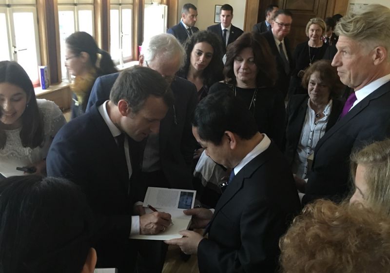 Tổng thống Pháp Macron ký tặng sách cho ông Nguyễn Văn Phước, sáng lập và CEO First News - Trí Việt