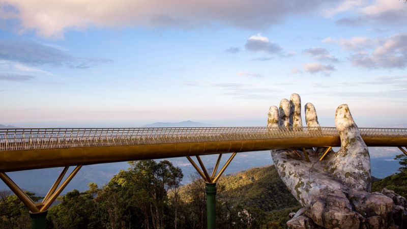 Cầu Vàng Bà Nà Hills đã vượt xa cầu treo Langkawi Sky (Malaysia) – một trong những cây cầu được bình chọn có thiết kế độc đáo và ấn tượng nhất thế giới về độ dài và chiều cao. Langkawi Sky là một trong số ít những cây cầu trên thế giới được xây dựng lơ lửng trên không trung tọa lạc trên đỉnh núi Gunung Mat Chinchang, ở Pulau Langkawi – một hòn đảo thuộc quần đảo Langkawi, bang Kedah, Malaysia, và tạo cảm giác thót tim cho du khách khi tản bộ trên độ cao hơn 700m so với mặt nước biển và chiều dài 125m.