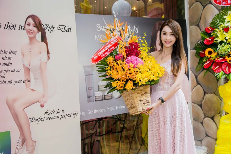 Cô chia sẻ: “ Helen về Việt Nam lần này để giới thiệu dòng mỹ phẩm do chính Helen làm đại sứ thương hiệu tại Đài Loan. Dòng mỹ phẩm này gồm các sản phẩm: sữa rửa mặt, keo dưỡng ẩm, mặt nạ, tẩy tế bào chết, kem nền chống nắng, kem dưỡng trắng…Tất cả các sản phẩm được bào chế từ đông dược! Khi về Việt Nam dòng sản phẩm có tên là Sweet Beauty”