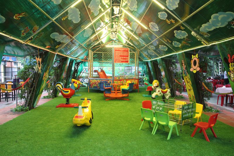 Thêm vào đó, Lộc Ấn đầu tư hẳn không gian xanh vui chơi cho các bé thiếu nhi. Một góc nhà hàng vườn ẩm thực được bày trí khu vui chơi phong cách chòi xanh, thảm cỏ thiên nhiên với nhiều trò chơi bổ ích... Khách hàng Gia đình, đặc biệt là cha mẹ, phụ huynh thoải mái thưởng thức món ngon, an tâm để con trẻ vui chơi, khám phá...
