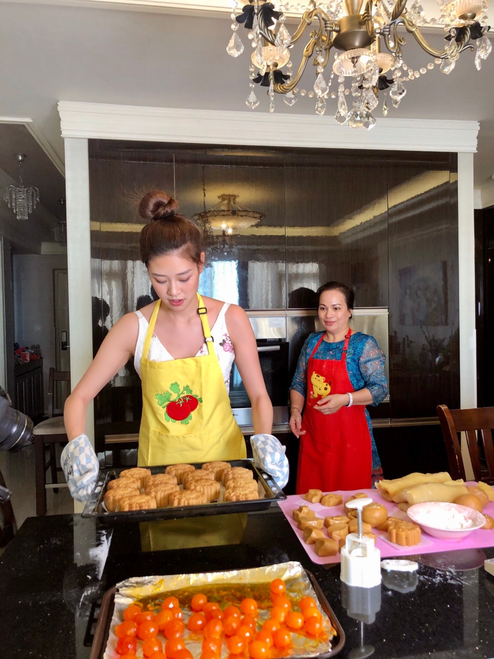 Để làm bánh Trung thu, Hoa hậu Khánh Vân nhờ cậy sự hướng dẫn của một người chị giàu kinh nghiệm và hoàn thành gần 200 chiếc bánh trong vòng một ngày.