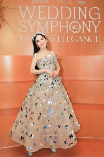 Vừa đáp máy bay về tới Việt Nam, nữ ca sĩ “Hoa cau vườn trầu” đã tranh thủ lên đồ, đến chúc mừng đàn em Chung Thanh Phong trình làng bộ sưu tập mới tại Wedding Symphony 2025.
