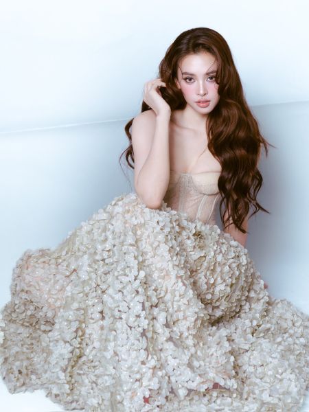 Trong khi đó, NTK Thanh Hương Bùi thắp sáng sân khấu Vietnam Beauty Fashion Fest XII với BST mang tên “Éclat”, lấy cảm hứng từ khoảnh khắc bừng sáng lấp lánh của những tia nắng mỏng manh nhưng rực rỡ và vẻ đẹp trong sáng của người phụ nữ. Sử dụng chất liệu satin, lụa óng và voan xuyên thấu, kết hợp kỹ thuật đính kết thủ công cùng ánh nhũ bạc – vàng trên nền bảng màu chủ đạo trắng, vàng, bạc và đen, BST “Éclat” sẽ mang đến những thiết kế dạ hội lộng lẫy, tôn vinh vẻ đẹp sang trọng, kiêu kỳ và bất diệt của phái đẹp.