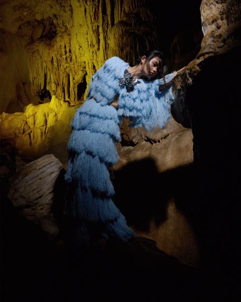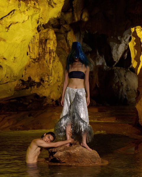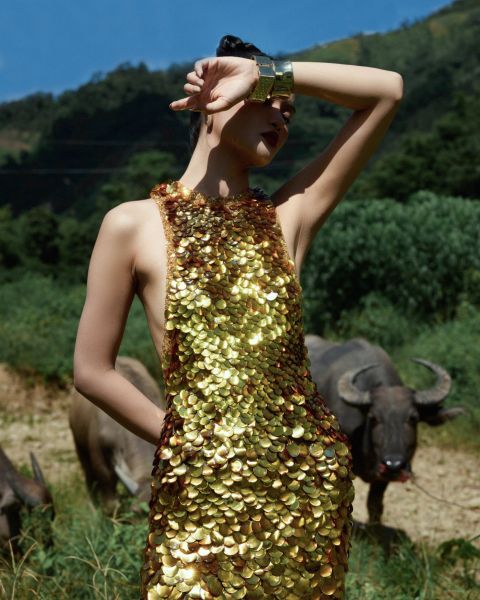 Những hình ảnh cánh đồng xanh bát ngát, ngôi nhà sàn gỗ mộc mạc, đàn trâu thong thả bên bãi cỏ, con đường uốn lượn giữa núi rừng và vẻ đẹp huyền ảo của hang Phượng Hoàng đã tạo nên không gian đậm đà bản sắc vùng núi Bắc Bộ. Bộ ảnh là chuyến du hành khắc họa câu chuyện tình yêu lãng mạn, mang đến trải nghiệm thời trang đầy thi vị và cảm xúc.