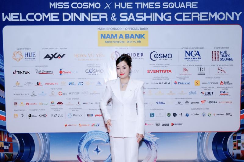 Hoa hậu – Doanh nhân Hoàng Thanh Nga xuất hiện rạng rỡ tại Miss Cosmo 2025 trong bộ vest trắng thanh lịch, kết hợp trang sức cao cấp của Ngọc Châu Âu, khẳng định phong cách hiện đại, quyền lực nhưng vẫn duyên dáng, đồng thời chính thức ký kết hợp tác chiến lược cùng Miss Cosmo 2025.