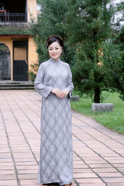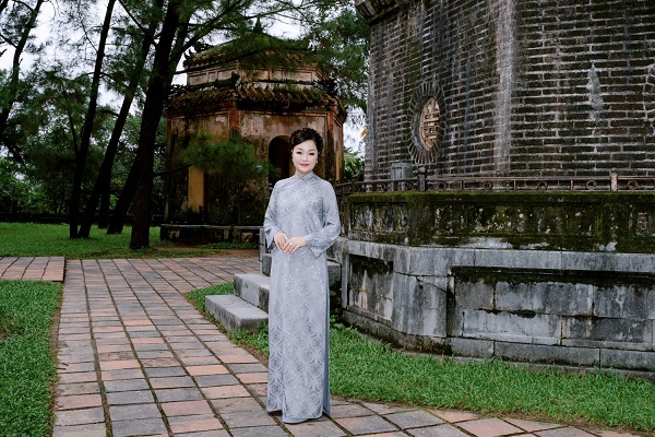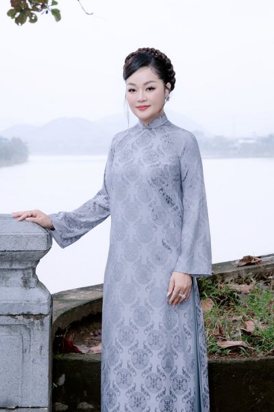 Trong sắc xám dịu nhẹ của bộ áo dài, Hoàng Thanh Nga chọn phong thái tối giản nhưng tinh tế, để mỗi đường nét uyển chuyển hòa vào kiến trúc bảy tầng đặc trưng của tháp Phước Duyên. Không cầu kỳ phụ kiện, không phô trương, nàng hậu để sự thanh tao tự nhiên của mình trở thành điểm nhấn giữa bối cảnh xanh trầm – cổ kính, tạo nên một khung ảnh đẹp tựa tranh.