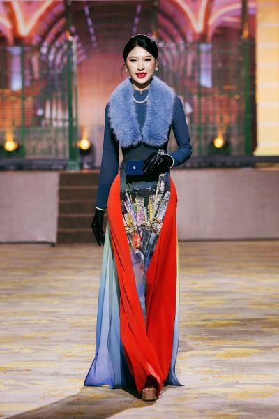 Phần trình diễn được bố trí thành hai mạch thị giác rõ nét. Miss Cosmo England, Sierra Leone, Brazil, Peru và Pakistan mở màn với những thiết kế mang gam màu rực rỡ, kết hợp loạt phụ kiện như nón lá, nón vàng, ngọc trai, găng tay và túi cầm tay, gợi sắc thái tươi sáng và năng lượng thịnh vượng của các nền văn hóa. Ở mạch trình diễn tiếp theo, các đại diện Thái Lan, Philippines, Hà Lan và Việt Nam bước ra trong những mẫu áo dài mang tông màu trầm, tạo nên sắc thái huyền bí, sâu lắng và đầy quyền lực. Sự đối lập mở ra nhiều tầng cảm xúc cho khán giả, làm nổi bật tinh thần sáng tạo và câu chuyện văn hóa được gửi gắm trong từng thiết kế.