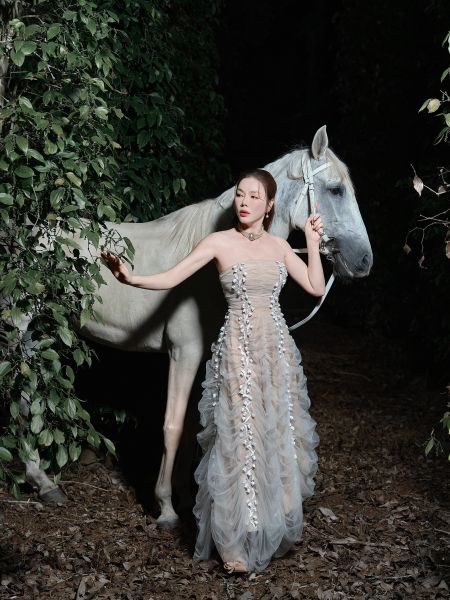 Hình ảnh Lý Nhã Kỳ sánh bước bên ngựa trong khuôn viên resort ven sông gợi liên tưởng đến tinh thần tự do, bền bỉ và mạnh mẽ – những giá trị thường được gắn với con giáp Ngọ. Trong từng khung hình, nữ diễn viên không cần tạo dáng cầu kỳ mà vẫn thể hiện rõ khí chất riêng: ánh mắt sắc sảo, thần thái tự tin và phong thái chậm rãi của một người phụ nữ hiểu rõ giá trị bản thân.