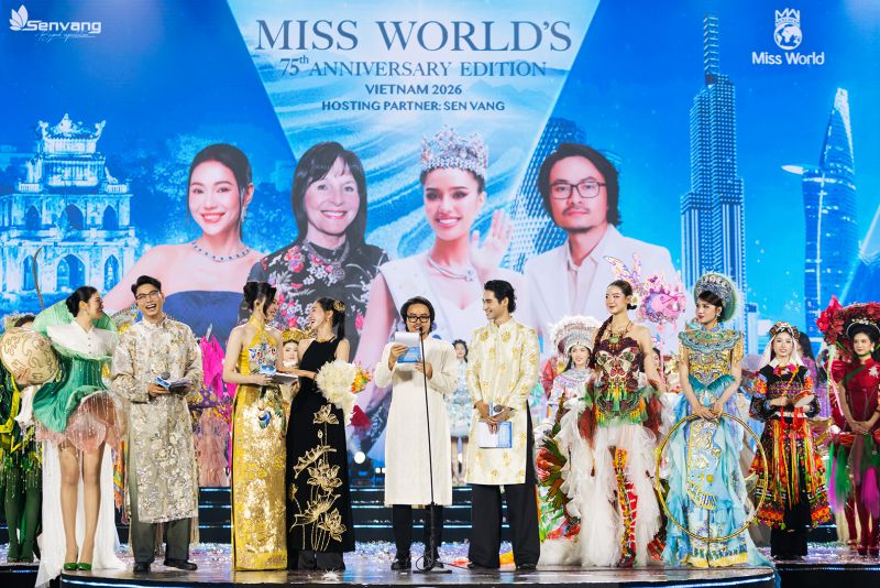 Điểm nhấn trong phần trình diễn Dances of Vietnam chính là màn xuất hiện ấn tượng của các Hoa - Á hậu, nhà thiết kế trẻ cùng dàn thí sinh Miss World Vietnam 2025 trên nền nhạc “Con cháu Vua Hùng toàn cầu” do ca sĩ Tùng Dương thể hiện, tạo nên khoảnh khắc giàu cảm xúc, lan tỏa niềm tự hào dân tộc và không khí hào hùng trên sân khấu.