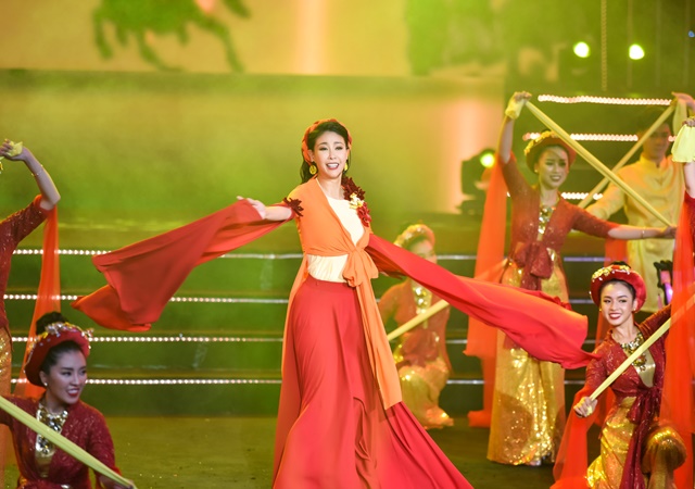 Hà Kiều Anh khoe giọng hát trên sân khấu Hoa Hậu Việt Nam Văn Hóa