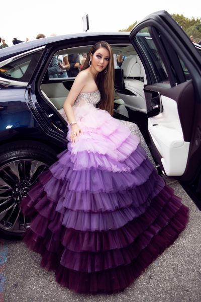 Chọn cho mình bộ đầm đính hàng ngàn viên pha lê với kỹ thuật may cao cấp nhất, phần tùng váy ombre chuyển màu tím nhạt sang đậm tinh tế, người đẹp họ Lý đã thu hút sự chú ý của “rừng” paparazi và chinh phục hoàn toàn người đối diện bởi thân hình đồng hồ cát, vẻ đẹp đài các, kiêu sa của một nàng công chúa. Không chỉ nổi bật trong bộ trang phục lung linh của Đỗ Long, Lý Nhã Kỳ còn gây chú ý khi đeo bộ trang sức kim cương đắt tiền. Được biết, bộ trang sức mà cô chọn đeo là của thương hiệu Paolo Piovan, một thương hiệu nổi tiếng trong làng kim hoàn thế giới.