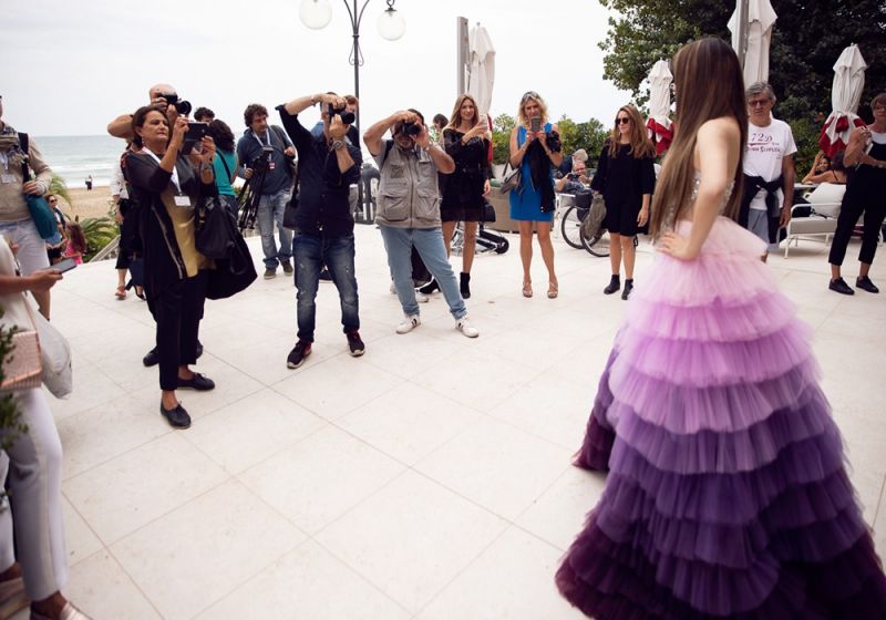 Vừa có chuyến công du thành công đầu tiên sang Rumani đã phải sắp xếp lịch trình bay sang Ý cùng ê-kíp để ủng hộ 'gà cưng' tranh giải Sư tử vàng, Lý Nhã Kỳ vẫn vô cùng rạng rỡ trong trang phục lộng lẫy của nhà thiết kế Đỗ Long, thu hút mọi ống kính của các nhiếp ảnh gia quốc tế.
