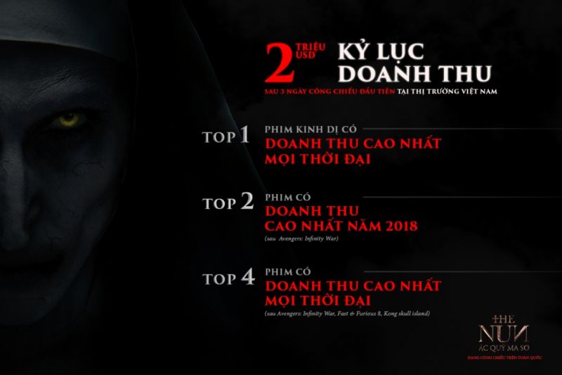 Ngay khi khởi chiếu, The Nun (tựa Việt hóa: Ác quỷ ma sơ) đã thống lĩnh hoàn toàn đấu trường phòng vé, liên tiếp phá vỡ nhiều kỷ lục doanh thu và trở thành một trong những bộ phim kinh dị nhãn R thành công nhất mọi thời đại.