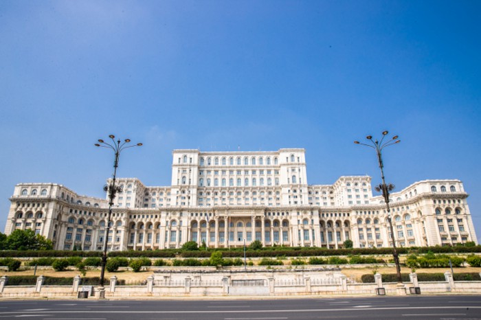Cung điện tọa lạc trên đồi Spirii, một quả đồi nổi tiếng ở thủ đô Bucharest. Đây là một tòa nhà có chiều rộng 270m, chiều dài 240m, cao 86m và phần ngầm dưới đất sâu 92m. Cả thảy có 1.100 phòng và 12 tầng nổi, 8 tầng ngầm. Tòa nhà được xây dựng với những đường nét kiến trúc được kết hợp từ nhiều phong cách kiến trúc khác nhau. Trong sách Kỷ lục Guiness Thế giới, Cung điện Nghị viện Romania – với diện tích 330.000 m2 sàn, được xếp thứ 2 trong số các tòa nhà trụ sở chính quyền trên thế giới, chỉ sau tòa Lầu Năm Góc nổi tiếng của Mỹ về diện tích; và xếp thứ 3 thế giới về thể tích không gian, với 2.550.000 m3. Tại bất cứ nơi nào ở thủ đô Bucharest, mọi người cũng đều có thể dễ dàng nhìn thấy tòa nhà này. Cung Nghị viện Romania đứng đó như một biểu tượng đầy ý nghĩa của nền dân chủ Romania, nơi những nghị sĩ Romania đang làm việc với nhiệm vụ cao quý là đại diện cho quyền lợi của nhân dân Romania.