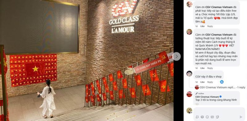 Lần đầu tiên trong lịch sử, một sự kiện quốc gia trọng đại như Lễ kỷ niệm 80 năm Cách mạng Tháng Tám và Quốc khánh 2/9 được phát sóng trực tiếp tại rạp chiếu phim, trong không khí xúc động, trang nghiêm và đầy tự hào. Nhiều khán giả mang theo cờ đỏ sao vàng, mặc áo in hình Tổ quốc cùng với nhiều hàng ghế chật kín từ sáng sớm. Trước đó, chiều ngày 28/8 các phòng chiếu tại CGV trên toàn quốc đã nhanh chóng “cháy vé” chỉ sau vài giờ mở đăng ký.