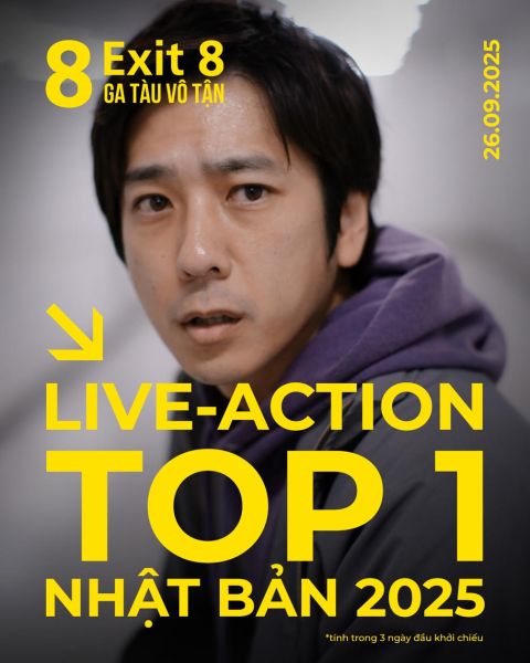 Ngày 17/9, phim Exit 8: Ga Tàu Vô Tận (tên tiếng Anh: Exit 8) vừa tung trailer chính thức, cho thấy yếu tố kịch tính và kinh dị đến từ một trò chơi có luật rất đơn giản. Khi khởi chiếu tại quê nhà Nhật Bản, bộ phim thu về 900 triệu yên, trở thành phim hành động có doanh thu cao nhất trong 3 ngày đầu tiên năm 2025. Sau 18 ngày ra rạp, Exit 8: Ga Tàu Vô Tận đã cán mốc 3 tỷ yên, xấp xỉ 540 tỷ Việt Nam đồng. Chính thức đổ bộ rạp Việt từ ngày 26/9, phim hứa hẹn thu hút khán giả qua trải nghiệm điện ảnh nhập vai - người xem cũng trở thành một người chơi game, căng thẳng đến phút cuối cùng.