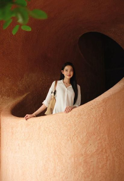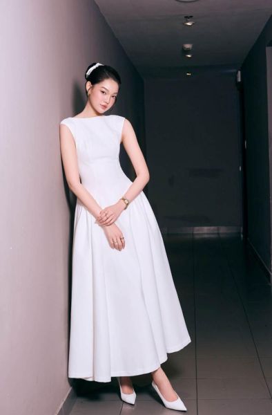 Rời khỏi sàn diễn, cô trở lại trẻ trung, thanh lịch đúng lứa tuổi.