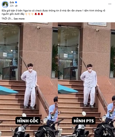 Mới đây, ca sĩ Erik đã có màn bị “bóc phốt” dở khóc dở cười trên mạng xã hội. Qua ống kính quay lén của người đi đường, Erik để lộ khoảnh khắc đi khám bệnh nhưng bị cộng động mạng đùa “Fan bắt gặp Erik đi khám thai sau mấy tháng bị lộ bụng bầu”. Trước đó, nam ca sĩ cũng nhiều lần viral với khoảnh khắc để lộ dấu hiệu tăng cân với chiếc bụng tròn ủm, nhưng được fan nhận xét giao diện quá đáng yêu nên tạm bỏ qua.