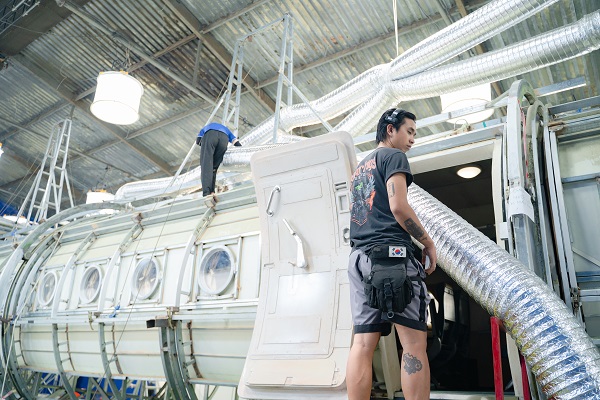 Theo anh Thái Hoàng Anh Dũng chia sẻ, chiếc máy bay có tổng chiều dài là 24 mét, đường kính gần 4 mét. Kích cỡ tưởng chừng khá lớn nhưng khi đặt máy và sắp xếp diễn viên vào thì lại rất hẹp, cameraman không thể đứng quay bên trong được, vì thế cần những cú máy có tay máy rất dài và đưa từ bên ngoài vào để thực hiện. Diễn viên Kaity Nguyễn nhớ lại: “Trong suốt quá trình quay, Kaity chưa bao giờ nghĩ mình đang ở trên một mô hình máy bay mô phỏng cả. Bước lên khoang và đóng cửa lại là mình tưởng như đang ở trên một chiếc máy bay thật vậy. Không gian ấy giúp diễn viên nhập tâm vào vai diễn rất nhanh. Cảm giác hệt như mình thật sự ở trên một chuyến bay, và chỉ có vẻn vẹn 75 phút để sinh tồn.”