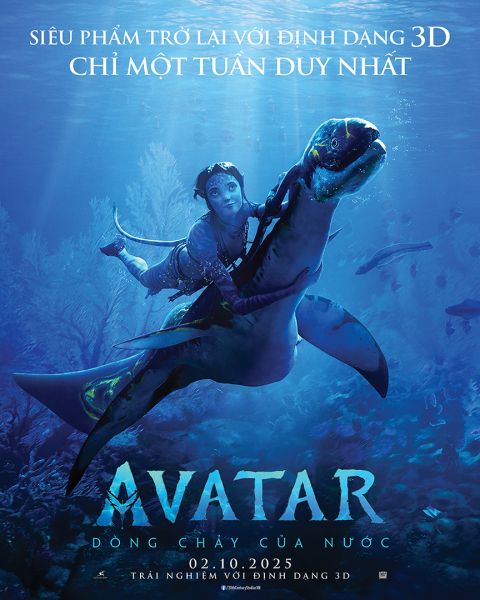 Trước thềm Avatar: Fire and Ash ra rạp cuối năm nay, khán giả bất ngờ được thưởng thức lại Avatar: The Way of Water (Tựa Việt: Avatar: Dòng Chảy Của Nước) trên màn ảnh rộng. Lần trở lại này không chỉ là cơ hội để người xem thưởng thức lại một kiệt tác điện ảnh từng làm rung chuyển thế giới, mà còn là trải nghiệm điện ảnh hoàn toàn mới nhờ công nghệ trình chiếu và kỹ thuật hình ảnh tiên tiến nhất hiện nay.