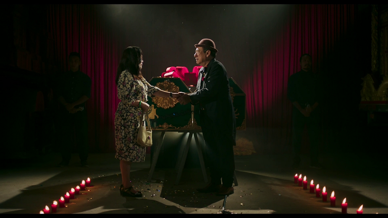 Đoạn cut vừa hài hước, vừa đau lòng này là minh chứng cho cách kể chuyện đầy duyên dáng và sâu sắc của “Phá Đám: Sinh Nhật Mẹ”, nơi tiếng cười luôn đi kèm nước mắt, và bi kịch lại ẩn trong những điều tưởng chừng rất đời thường. Sự chỉn chu, nghiêm túc mà lãng mạn của ông Tình trong việc trang hoàng hai chiếc hòm đôi bằng chiếc nơ to và ánh nến lung linh khiến người xem vừa bật cười đấy, nhưng cũng xúc động ngay đấy với những bộc bạch chân thành từ tận đáy lòng của một trái tim mãi còn trẻ vì yêu thương. Để rồi ông suýt đứng không vững với nỗi thất vọng ê chề, khi người thương lại một lần nữa từ chối. Nhưng có lẽ ông kiên trì suốt ngần ấy năm không bỏ cuộc, là vì ông hiểu bà Tâm hẳn có nỗi khổ riêng, chứ không phải không cảm động trước tình cảm của ông. Vậy nên sự gắn bó của hai người lại càng thêm đáng quý, vì họ hiểu nhau, cảm thông cho nhau, và vẫn luôn bên nhau mà không cần ai phải nói ra.