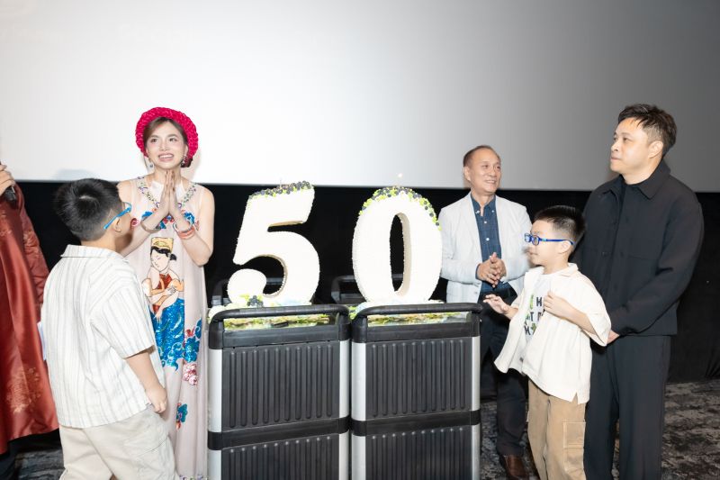 Buổi ra mắt trở nên đặc biệt hơn khi nhà sản xuất - diễn viên Đinh Ngọc Diệp bất ngờ tặng bánh kem mừng sinh nhật cho ông xã - đạo diễn Victocr Vũ