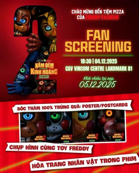 Mùa phim cuối năm 2025 đang nóng dần với sự trở lại của loạt thương hiệu đình đám, và tâm điểm không thể bỏ qua chính là NĂM ĐÊM KINH HOÀNG 2 (tựa gốc: Five Nights at Freddy’s 2). Sau thành công vang dội của phần đầu, hậu truyện lần này được xem như “sự kiện kinh dị” lớn nhất mùa, khi không chỉ mở rộng thế giới của thương hiệu game huyền thoại mà còn nâng cấp mọi mặt từ câu chuyện, nhân vật đến trải nghiệm rùng rợn tại rạp. Với những bí mật quá khứ lần đầu được hé lộ, dàn thú máy sát nhân mới và phong cách hù dọa được đẩy lên cấp độ kịch tính hơn, NĂM ĐÊM KINH HOÀNG 2 hứa hẹn trở thành bộ phim không thể bỏ lỡ dành cho các khán giả yêu thể loại kinh dị.