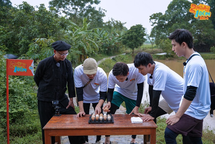 Bên cạnh đó, một thử thách nữa cũng được hé lộ đó chính là chọn trứng sống - trứng chín, các thành viên trong một đội phải chọn được 3 quả trứng chín mới được xem là hoàn thành nhiệm vụ. Người đầu tiên thực hiện thử thách đó chính là Dương Lâm, dù rất mạnh miệng tuyên bố đây là “nghề của mình”, thế nhưng Diễm lại bốc trúng “síc-rịt” trứng sống.