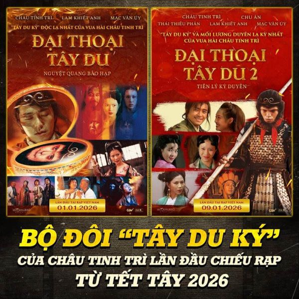 Sau gần 30 năm chờ đợi, “thánh hài” của điện ảnh Hồng Kông Châu Tinh Trì chính thức trở lại màn ảnh rộng Việt Nam với bộ đôi tác phẩm kinh điển ĐẠI THOẠI TÂY DU, chính thức chiếu tại các rạp trên toàn quốc từ ngày 01.01.2026 đúng dịp Tết Dương Lịch, mang đến liều thuốc cười sảng khoái cho khán giả đầu năm mới.