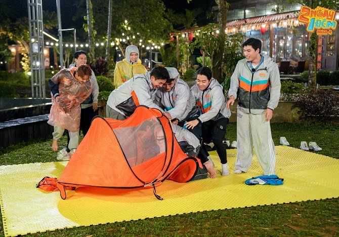 Bên cạnh phần thử thách giành suất ăn ngon thì chuyện ngủ sướng - khổ cũng luôn là phần được khán giả quan tâm nhất nhì ở mỗi chặng hành trình. Đối với chặng này, các thành viên sẽ chia ra làm 2 đội và cùng chui vào trong chiếc lều mini, đội nào hoàn thành trước sẽ giành được chỗ ngủ ngon.