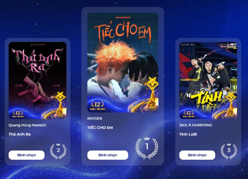 Với ‘Video âm nhạc được yêu thích nhất’, bảng xếp hạng phản ánh rõ xu hướng thưởng thức của khán giả trẻ, khi các sản phẩm không chỉ được đánh giá qua chất lượng hình ảnh, âm nhạc mà còn ở khả năng tạo hiệu ứng lan tỏa. Nhiều MV lọt top đầu đã duy trì lượng bình chọn ổn định suốt nhiều tuần, cho thấy sức sống bền bỉ của các sản phẩm âm nhạc trong năm qua.