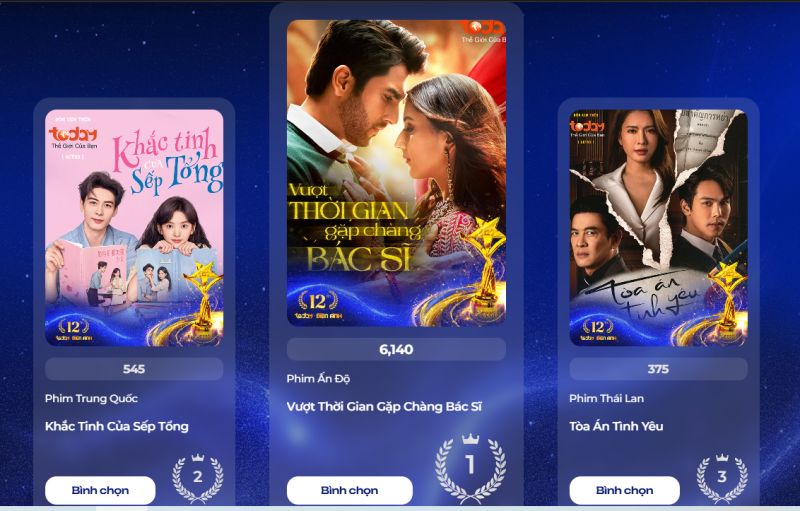 Không chỉ Điện ảnh và Truyền hình, các hạng mục thuộc Không gian mạng và ‘Video âm nhạc được yêu thích nhất’ cũng ghi nhận mức độ cạnh tranh cao trong chặng nước rút. Đặc thù của các nền tảng số giúp nhiều đề cử có cú bứt tốc rõ rệt ở những ngày cuối, khi lượng bình chọn tăng nhanh nhờ sức lan tỏa mạnh mẽ trên mạng xã hội.