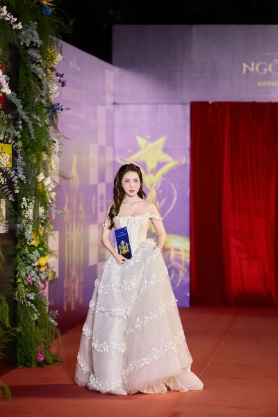 Tác giả Huỳnh Tú Uyên đẹp rạng rỡ và quyến rũ trên thảm đỏ Lễ trao giải thưởng Ngôi sao xanh Văn Hóa