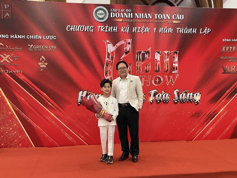 NSND Vương Duy Biên, Chủ tịch Hiệp hội Phát triển Công nghiệp Văn hóa Việt Nam, Phó Chủ Tịch Liên Hiệp Hội VHNT Việt Nam, Nguyên Thứ Trưởng Bộ Văn Hóa, Thể Thao Và Du Lịch. trao tặng danh hiệu Ca Sĩ Nhí Triển Vọng cho Gia Minh.