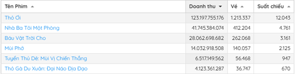 Doanh thu phim sau 3 ngày chiếu theo Box Office Vietnam